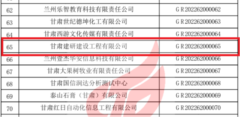 近日,國家高新技術企業(yè)認定管理工作領導小組辦公室發(fā)布了甘肅省認定機構2022年認定的第一批高新技術企業(yè)備案公告,建研建設公司位列其中,成功通過了國家高新技術企業(yè)復審。