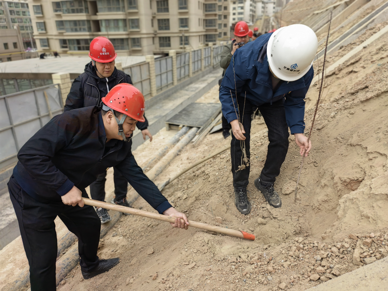 春回大地萬物蘇,植樹添綠正當時。3月15日下午,甘肅建科院建研建設公司黨支部依托九洲新華小區(qū)邊坡加固綠化項目,與項目甲方甘肅新華房地產(chǎn)公司黨支部開展支部聯(lián)建植樹節(jié)主題黨日活動。兩單位領導班子成員、支部委員、團員青年代表、勞務班組代表共計40余人參加了本次活動。活動由甘肅建科院建研建設黨支部副書記孫藝珊主持。