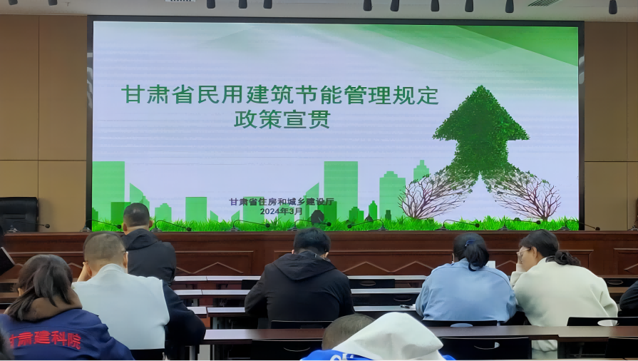 3月26日,甘肅省住建廳通過線上線下相結(jié)合的方式,組織進(jìn)行了《甘肅省民用建筑節(jié)能管理規(guī)定》(2023年12月23日修訂版)政策宣貫培訓(xùn)會。甘肅建科院在建研大廈12樓設(shè)立分會場,積極組織40余人集中參加視頻直播培訓(xùn)。