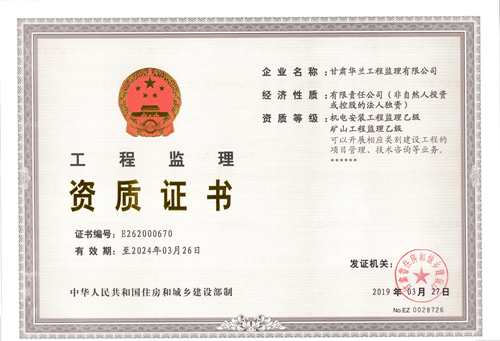 礦山工程監(jiān)理乙級資質(zhì)證書!