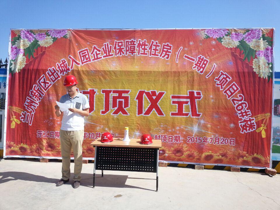 在建設(shè)單位、施工單位、監(jiān)理單位各方共同努力下,由科研院華蘭監(jiān)理公司承擔監(jiān)理的“甘肅建投蘭州新區(qū)保障性住房一期工程”項目26#樓主體結(jié)構(gòu)于2015年7月20日順利封頂。