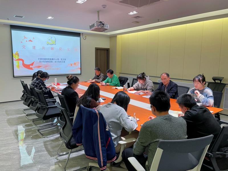 為深入開(kāi)展學(xué)習(xí)貫徹習(xí)近平新時(shí)代中國(guó)特色社會(huì)主義思想主題教育,進(jìn)一步推動(dòng)黨員干部深刻領(lǐng)會(huì)“三抓三促”行動(dòng)重要意義,提升黨建工作水平,加強(qiáng)黨建和生產(chǎn)經(jīng)營(yíng)融入融通融合,實(shí)現(xiàn)黨組織優(yōu)勢(shì)互補(bǔ),11月10日下午,甘肅建科院檢測(cè)中心第一黨支部與甘肅省建設(shè)設(shè)計(jì)咨詢(xún)集團(tuán)有限公司第二設(shè)計(jì)院黨支部開(kāi)展“黨建共融促實(shí)效”黨建聯(lián)學(xué)聯(lián)建主題黨日活動(dòng)。雙方單位黨員代表、業(yè)務(wù)骨干代表共同參加了活動(dòng)。
