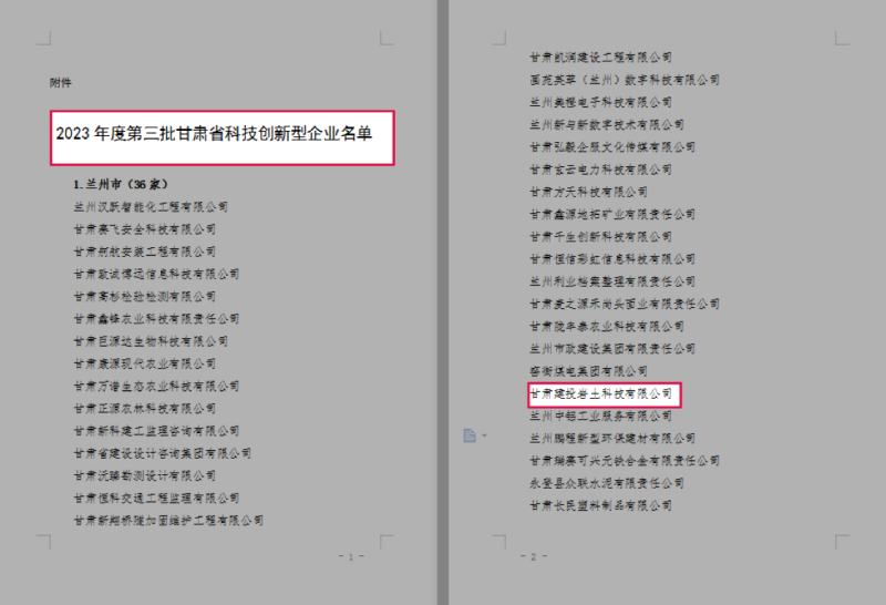 近日,從甘肅省科技廳下發(fā)的《關(guān)于認(rèn)定2023年度第三批甘肅省科技創(chuàng)新型企業(yè)的通知》(甘科高[2023]12號(hào))文件獲悉,甘肅建投巖土科技有限公司憑借突出的創(chuàng)新發(fā)明、工法、專(zhuān)利等科技成果,榮獲“2023年度甘肅省科技創(chuàng)新型企業(yè)”稱(chēng)號(hào)。