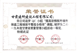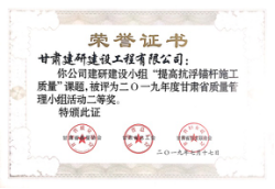 近日,從甘肅省質量協(xié)會獲悉,建研建設公司4個小組喜獲2019年優(yōu)秀質量管理小組一等獎、二等獎各2項。
