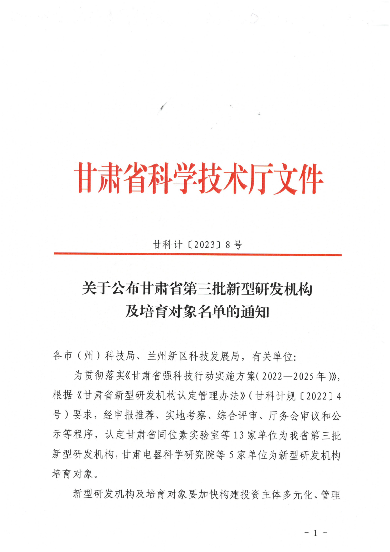據(jù)了解,省級“新型研發(fā)機構”是指在甘肅省內注冊并運營,聚焦科技創(chuàng)新需求,主要從事科學研究、技術創(chuàng)新和研發(fā)服務,投資主體多元化、管理制度現(xiàn)代化、運行機制市場化、用人機制靈活的獨立法人機構。