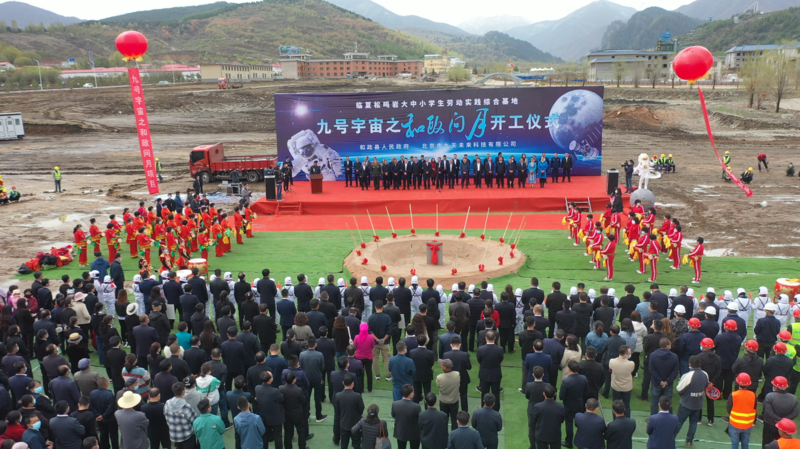 戰(zhàn)略合作協(xié)議簽訂儀式后,張永志一行前往松鳴巖大中小學(xué)生勞動實踐綜合基地暨九號宇宙之“和政問月”項目現(xiàn)場,參加了開工儀式,并為項目培土奠基。