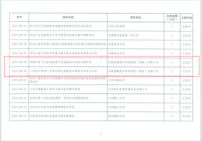 近日,蘭州市2023年青年科技人才創(chuàng)新項(xiàng)目名單公布,甘肅建科院申報(bào)的《雙碳背景下甘肅省建筑產(chǎn)業(yè)碳排放分析及對(duì)策研究》《鄉(xiāng)村振興視角下甘肅宜居農(nóng)房建造關(guān)鍵技術(shù)研究與應(yīng)用》2項(xiàng)目獲批立項(xiàng),共獲批經(jīng)費(fèi)10萬(wàn)元。