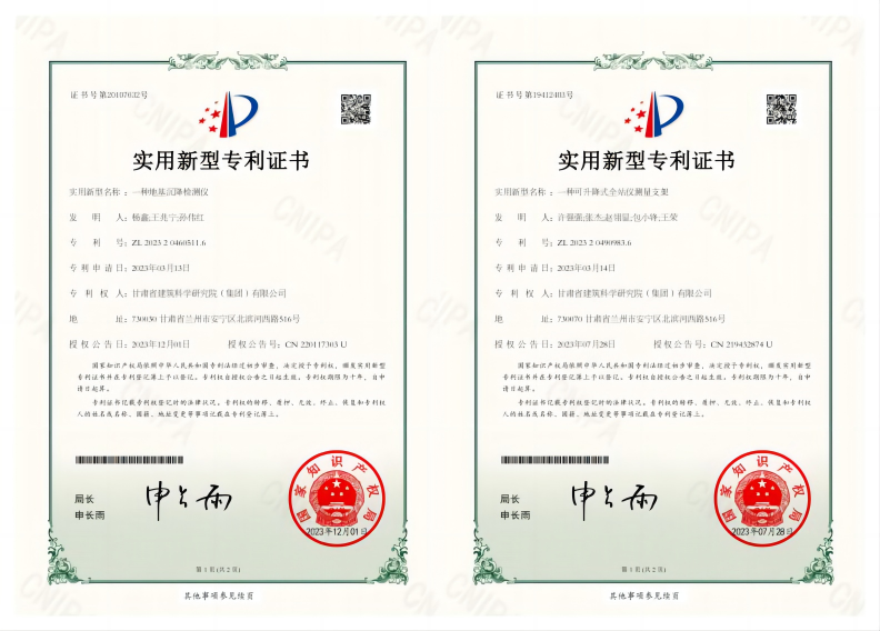 近日,地基巖土專業(yè)事業(yè)部申報的“一種地基沉降檢測儀”和“一種可升降式全站儀測量支架”兩項實用新型專利正式獲得國家知識產(chǎn)權(quán)局審核并授予專利通知。