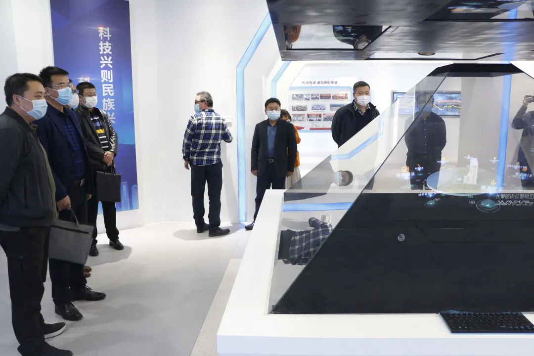 座談會(huì)前,在副總經(jīng)理袁寧的帶領(lǐng)下,副總經(jīng)理韓成海一行參觀了建研大廈一樓展廳,工作人員對(duì)建研大廈應(yīng)用的IBMS系統(tǒng)、BIM+VR、全息投影等十余項(xiàng)新技術(shù)進(jìn)行了詳細(xì)介紹。