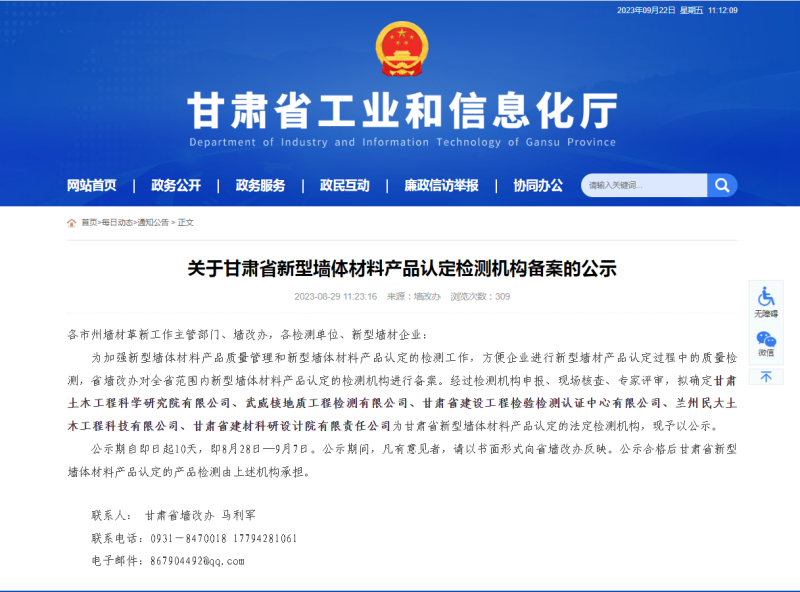 近年來,在甘肅建科院領(lǐng)導班子的帶領(lǐng)下,公司檢測業(yè)務(wù)能力得到極大增強,尤其在建筑節(jié)能“四新”方面取得突破性進展。此次入選甘肅省新型墻體材料產(chǎn)品備案認定檢測機構(gòu)是甘肅建科院在新材料節(jié)能檢測領(lǐng)域內(nèi)得到認可的體現(xiàn)。這既是政府相關(guān)單位對甘肅建科院以往工作的肯定,更是對省建科院以后工作的嚴峻考驗。在新的起點上,建科人將以崇高的使命、百倍的信心,嚴控把關(guān),為我省新型墻體材料產(chǎn)品的發(fā)展做出新的、更大的貢獻。