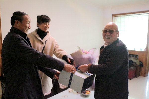 11月25日是退休老人吳振東的生日,我院紀委書記、工會主席路遠,工會副主席周婷及黨群工作部等人員一行,帶著提前為老人訂制好的生日蛋糕和生日鮮花,來到老人家中為他送上祝福。吳振東老人對院里送來的關心和溫暖表示十分感謝。工會主席路遠親切詢問老人的健康情況,并代表單位祝愿老人身體健康、生日快樂!