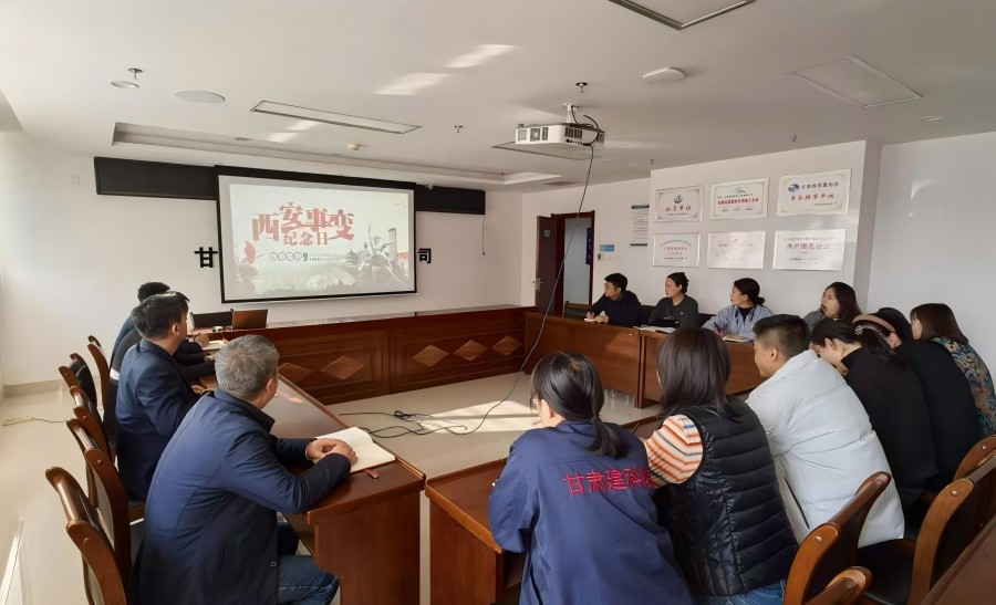 2024年12月12日,甘肅建科院監(jiān)理公司黨支部通過線上線下共同觀看西安事變歷史紀錄片的方式,開展以“銘記歷史、團結(jié)奮斗”為主題的主題黨日活動,重溫“西安事變”這一重大歷史事件,監(jiān)理公司黨支部全體黨員參加此次活動。