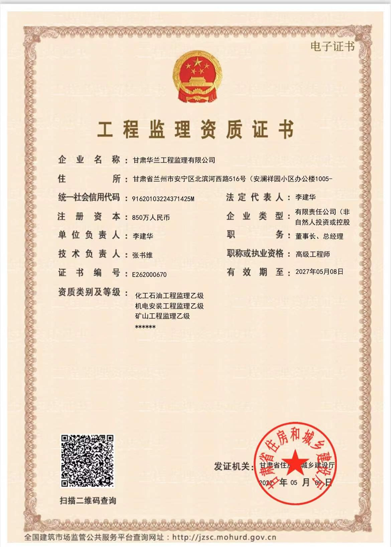 在建科院(集團(tuán))公司的大力支持下,甘肅華蘭工程監(jiān)理有限公司近日成功取得甘肅省住房和城鄉(xiāng)建設(shè)廳頒發(fā)的化工石油工程專業(yè)監(jiān)理乙級(jí)資質(zhì)。