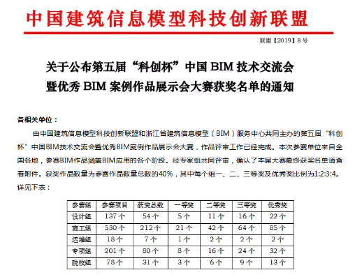 該獎項是國內(nèi)BIM技術(shù)應(yīng)用方面的三大獎項之一,由中國建筑信息模型科技創(chuàng)新聯(lián)盟、浙江省建筑信息模型(BIM)服務(wù)中心共同主辦,分設(shè)計、施工、運維、專項、院校五個組;參賽單位來自全國各地,參賽BIM作品涵蓋BIM應(yīng)用的各個階段。