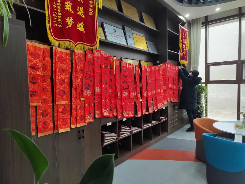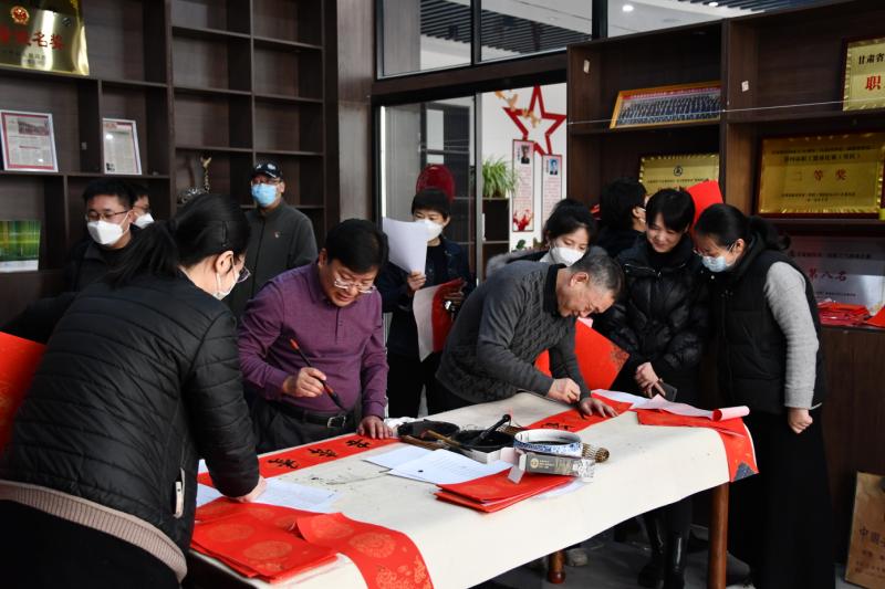 春節(jié)將至,年味漸濃。為弘揚(yáng)和傳承中國(guó)傳統(tǒng)文化,增添喜慶氛圍,1月13日,甘肅建科院工會(huì)在建研大廈12樓舉辦了“迎新納福送春聯(lián)、濃濃墨香暖人心”活動(dòng)。此次活動(dòng)專門(mén)邀請(qǐng)公司退休老領(lǐng)導(dǎo)王克成和職工書(shū)法愛(ài)好者們現(xiàn)場(chǎng)書(shū)寫(xiě)春聯(lián)、福字,為公司全體職工送上新春祝福。
